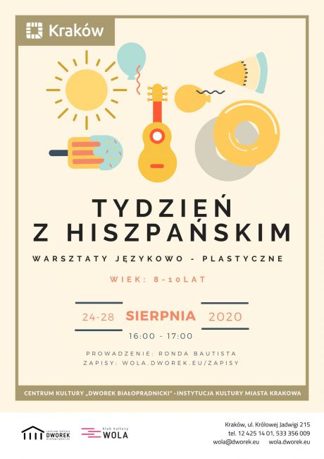 A może by tak na koniec wakacji pojechać do Hiszpanii wehikułem wyobraźni? Zapraszamy gorąco wszystkie dzieci w wieku ok. 8-10 lat do udziału w warsztatach językowo-plastycznych "Tydzień z hiszpańskim" w Klubie Kultury Wola, ul. Królowej Jadwigi 215. Będzie słonecznie i radośnie 🌞. Zajęcia poprowadzi niezastąpiona Ronda Bautista, ceniona w Hiszpanii i Polsce artystka młodego pokolenia.