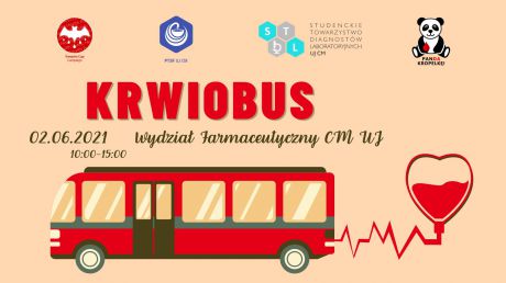 Osoby chętne do wzięcia udziału w wydarzeniu serdecznie zapraszamy na Wydział Farmaceutyczny UJ CM! Krwiobus przyjedzie do nas 2 czerwca (środa) w godzinach 10:00-15:00.