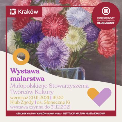 Małopolskie Stowarzyszenie Twórców Kultury jest kontynuacją działalności Robotniczego Stowarzyszenia Twórców Kultury, przy Kombinacie Metalurgicznym w Nowej Hucie. W 2006 r. zmieniono nazwę Stowarzyszenia. Skład obecny stanowią osoby różnych profesji, dla których twórczość stanowi wybrany sposób na bogatsze i pełniejsze życie. Malują i rysują, piszą wiersze i prozę, fotografują i tworzą rękodzieło. Czerpią pomysły z pokładów swych artystycznych uzdolnień, poszerzają umiejętności, a wynikiem twórczej pracy dzielą się ze środowiskiem. Na wystawie w Klubie Zgody będą prezentowane prace plastyczne w różnych technikach.