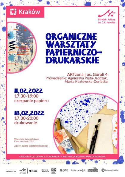 Zapraszamy na dwuczęściowe organiczne warsztaty papierniczo-drukarskie, które odbędą w ARTzonie Ośrodka Kultury im. C. K. Norwida (os. Górali 4), które odbędą w lutym 2022 roku . Dlaczego organiczne? Dlatego, że będziemy przyglądać się strukturze materiałów, na których będziemy pracować: włóknom celulozy w przypadku papieru i pigmentowi w przypadku druku. Organiczność będzie również nawiązywała do idei less-waste i upcyklingu, ponieważ arkusze papieru, które stworzą uczestnicy będą pochodziły z biurowej niszczarki. Będziemy także barwić nasz papier barwnikami pozyskanymi z roślin, a do procesu drukowania użyjemy m.in. plastrów drewna.