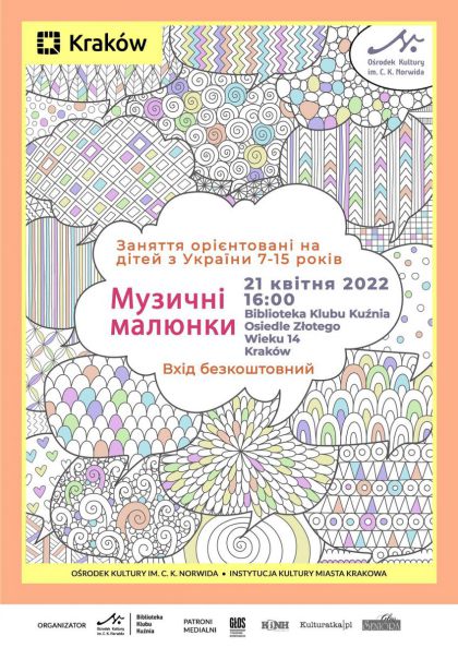 Biblioteka to miejsce pełne słów, człowiek potrafi jednak porozumiewać się również na inne sposoby. Dźwięki i obrazy to nasz uniwersalny język – pozwala przekazać wszelkie emocje i fantazje. A gdyby tak namalować dźwięki? Na zajęciach w naszej bibliotece, w otoczeniu tysięcy książek, dzieci będą mogły zrelaksować się przy muzyce i za pomocą kredek, pisaków, kolorowych papierów i tkanin, a nawet ziaren czy liści, wyrazić wszystko, co podpowie serce i wyobraźnia.