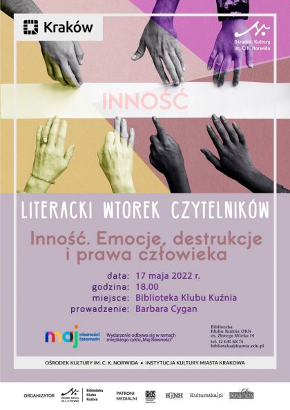 Stwierdzenie, że każdy z nas jest inny, to niby banał, ale prawda jest taka, że rozumienie i akceptacja "inności" stanowi całkowicie inny wymiar. Na poziomie jednostki mówimy o tolerancji, na poziomie społecznym o prawach człowieka. Już od czasów antycznych "inność" jest jednym z wiodących tematów literackich, wywołujących ogromne emocje. Serdecznie zapraszamy na Literacki Wtorek Czytelników związany z tematyką równości i tolerancji.