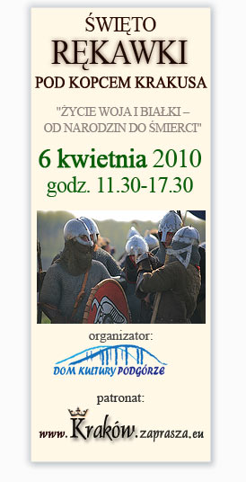 Czy to tylko odpust odbywający się w trzeci Dzień Świąt Wielkanocnych pod Kościółkiem św. Benedykta, czy też ślad prastarych obrzędów słowiańskich? Od 2001 roku Dom Kultury "Podgórze" organizuje Rękawkę w innej formie - wraca do jej prasłowiańskich korzeni - umożliwiając cofnięcie się w czasie o sześć wieków. Pod Kopcem Krakusa można zobaczyć jak wyglądało życie we wczesnośredniowiecznych osadach, rzemiosło, uzbrojenie, stroje. Można spróbować potraw gotowanych według przepisów naszych przodków i zobaczyć jak wyglądały średniowieczne potyczki zbrojne. Uzupełnieniem jest możliwość poznania historii Kopca Krakusa, państwa Wiślan i Polan.