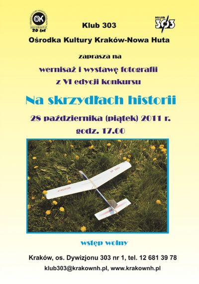 Klub 303 Ośrodka Kultury Kraków-Nowa Huta (os. Dywizjonu 303 nr 1) zaprasza na wernisaż wystawy fotografii VI edycji konkursu Na Skrzydłach Historii.