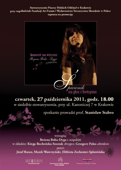 zapraszają na spotkanie poetycko-muzyczne z okazji wydania śpiewnika na głos i fortepian do muzyki Bożeny Boba-Dyga pt. Koncert na wiersze