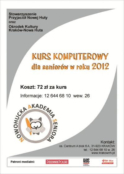 Nowohucka Akademia Seniora zaprasza na kurs podstawowej obsługi komputera dla osób starszych.