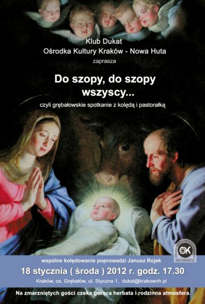 Na muzyczne spotkanie, zapraszamy tych wszystkich, którzy wierni tradycji pragną wspólnie śpiewać kolędy i pastorałki. Na każdego, kto zechce zaprezentować swój głos czeka mikrofon, śpiewnik multimedialny oraz gorąca kawa i herbata. W czasie spotkania będzie można usłyszeć refleksyjną impresję poetycką w wykonaniu Klubowej Grupy Poetica, a także uczestniczyć w otwarciu wystawy szopek Zbigniewa Krawczyka.