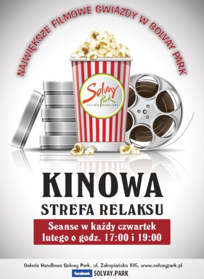 Największe filmowe gwiazdy w lutym zawitają do GH Solvay Park. W każde czwartkowe popołudnie lutego ( 2, 9, 16 i 23.02.) Solvay Park zaprasza do Kinowej Strefy Relaksu. Seanse o godz. 17:00 i 19:00.
