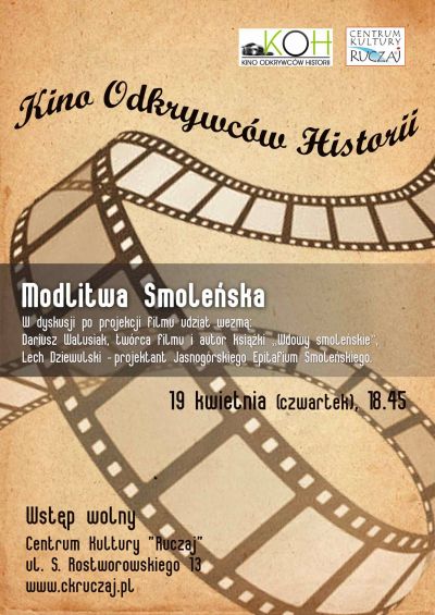 Centrum Kultury "Ruczaj" zaprasza na projekcję filmu "Modlitwa smoleńska" i dyskusję z udziałem Dariusza Walusiaka, twórcą filmu i autorem książki "Wdowy smoleńskie" oraz Lecha Dziewulskiego, projektanta Jasnogórskiego Epitafium Smoleńskiego.