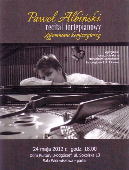 Recital poświęcony odtworzeniu dzieł zapomnianych i nieznanych kompozytorów XIX i XX wieku. W programie utwory fortepianowe cechujące styl muzyki romantyzmu i ekspresjonizmu, które w większości w Krakowie nie były wcześniej wykonywane. Utwory wykona solista Paweł Albiński.