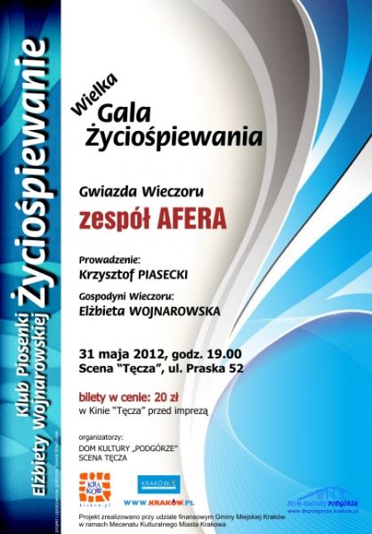 Już 31 maja na krakowskiej Scenie Tęcza rozpocznie się tegoroczna Wielka Gala Życiośpiewania z udziałem Zespołu Afera i Krzysztofa Piaseckiego.