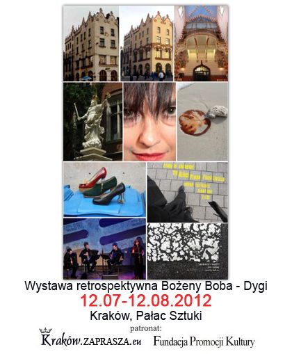 W ramach ekspozycji będzie można zobaczyć realizacje twórcze artystki z różnych dziedzin sztuki: plastyki, muzyki i literatury. Osiągnięcia w ramach sztuki wizualnych reprezentować będzie fotografia artystyczna, montaże plastyczno-literackie, dokumentacje fotograficzne prac konserwatorskich, projekty kostiumów i rekwizytów teatralnych, projekty unikatowych butów oraz ich realizacje, będzie też film o twórczości artystki przygotowany przez Tadeusza Oratowskiego. Podczas wernisażu będzie miało miejsce prawykonanie partytury graficznej artystki, oraz krótki koncert piosenki poetyckiej w wykonaniu znanej krakowskiej pieśniarki Lochu Camelot - Jagi Wrońskiej, która zaśpiewa teksty Bożeny Boba- Dygi.