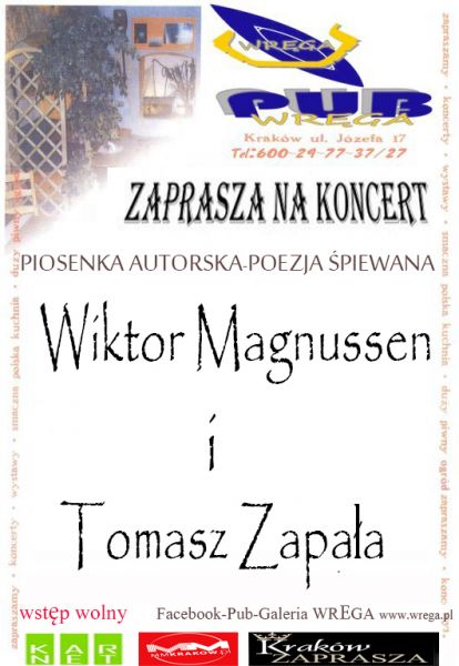 Victor Magnussen i Tomasz Zapała wystąpią w piątkowy wieczór w magicznym ogródku piwnym na Kazimierzu. Usłyszymy ballady po angielsku w wykonaniu gitarowym z elementami popu i rocka!