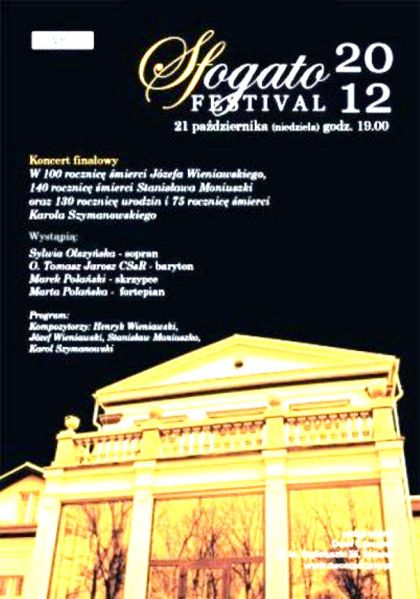 Już w najbliższą niedzielę (21.10) w Sali Balowej Dworu Czeczów odbędzie się finałowy koncert III Międzynarodowego Festiwalu Muzyczno-Artystycznego Sfogato.