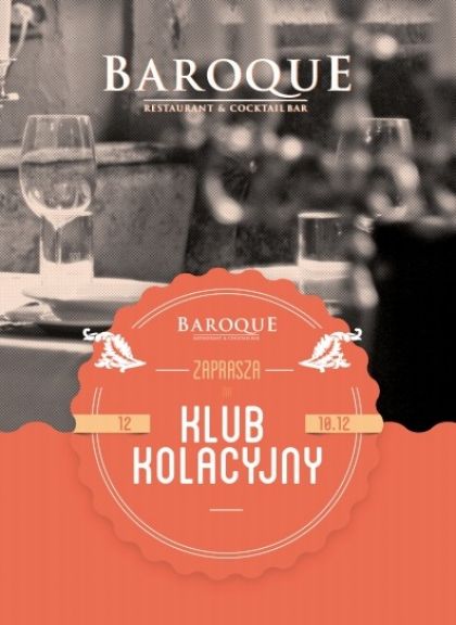 W piątek, 16 listopada 2012 roku, Baroque Restaurant & Cocktail Bar zaprasza na drugie spotkanie Klubu Kolacyjnego. Motywem przewodnim wieczoru będzie kuchnia włoska.