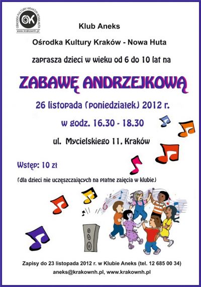 Zbliżają się Andrzejki! A jeśli Andrzejki to zabawa, wróżby i swawole, na które zaprasza Klub Aneks Ośrodka Kultury Kraków-Nowa Huta (ul. Mycielskiego 11). Zabawa odbędzie się 26 listopada 2012 r. w godz. 16.30-18.30.