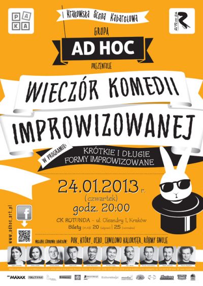 Zapraszamy 24.01 na kolejny Wieczór Komedii Improwizowanej do krakowskiej Rotundy. Tym razem także Was zaskoczmy. Otóż przygotowujemy dla Was długie formy improwizacyjne.