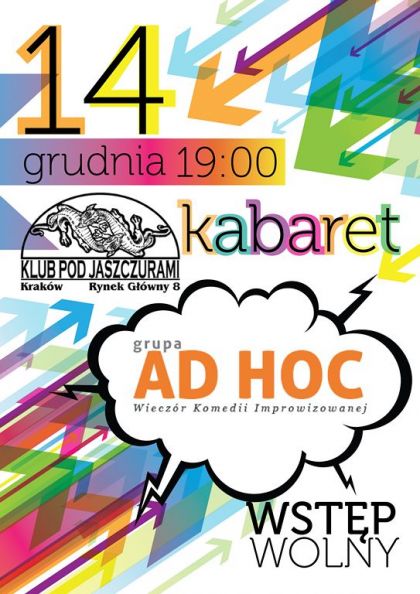 Wieczór komedii improwizowanej w wykonaniu grupy "Ad Hoc" już w najbliższy piątek o godzinie 19.00 na słynnej scenie "Klubu Pod Jaszczurami".