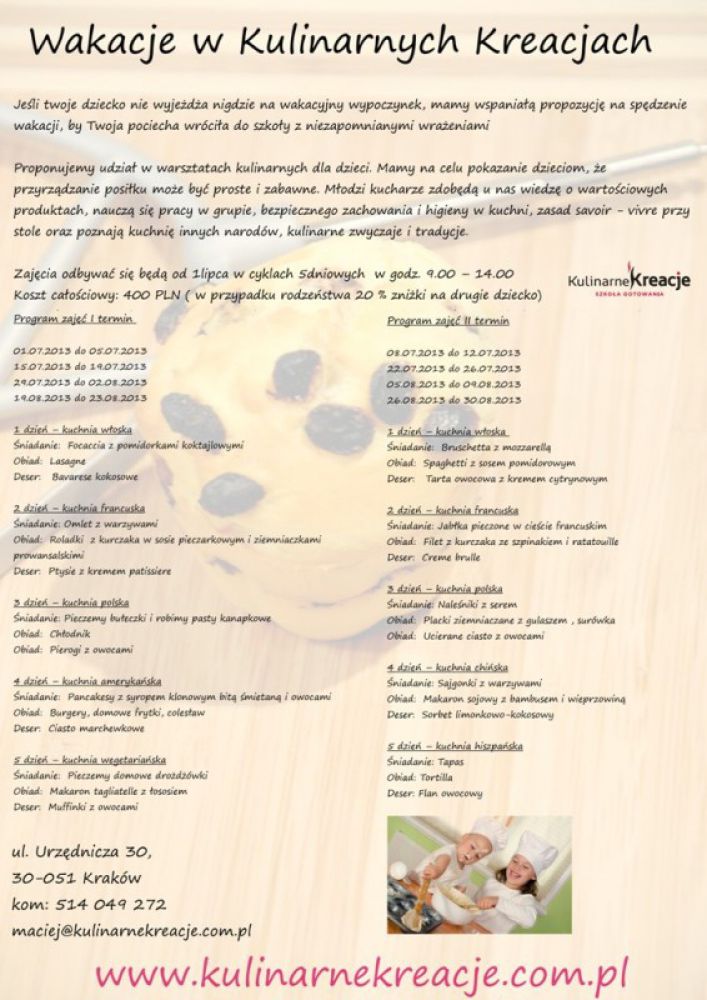 WAKACJE DLA DZIECI W KULINARNYCH KREACJACH