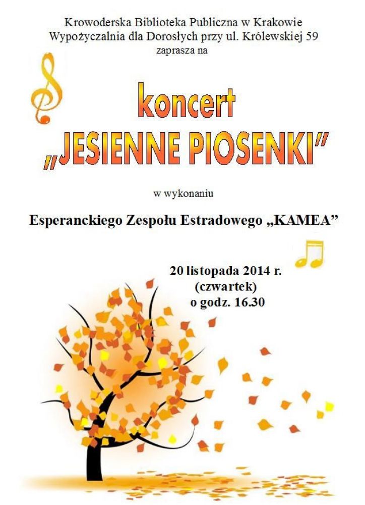 Koncert "Jesienne Piosenki" w wykonaniu Esperanckiego Zespołu Estradowego "Kamea"