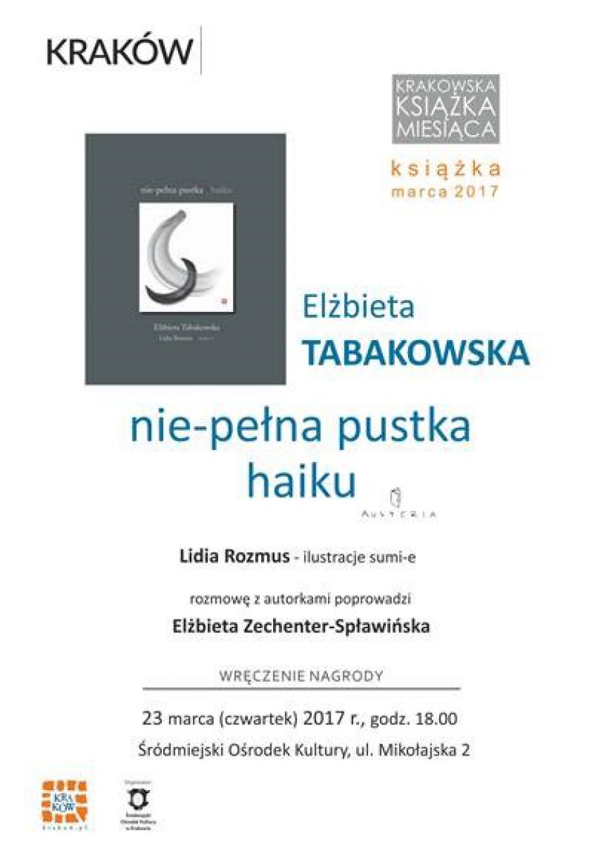 HAIKU Elżbiety Tabakowskiej wyróżnione nagrodą "Krakowskiej Książki Miesiąca"