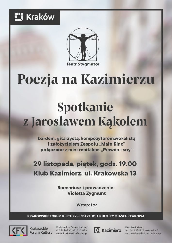 POEZJA NA KAZIMIERZU - spotkanie z Jarkiem Kąkolem liderem Zespółu "Małe Kino"