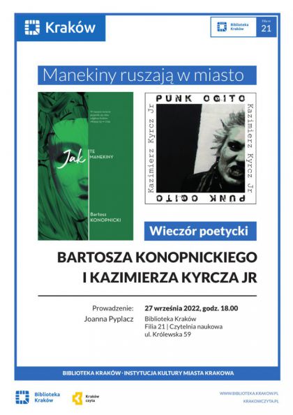 Wieczór poetycki Bartosza Konopnickiego i Kazimierza Kyrcza Jr - prowadząca Joanna Pypłacz.
