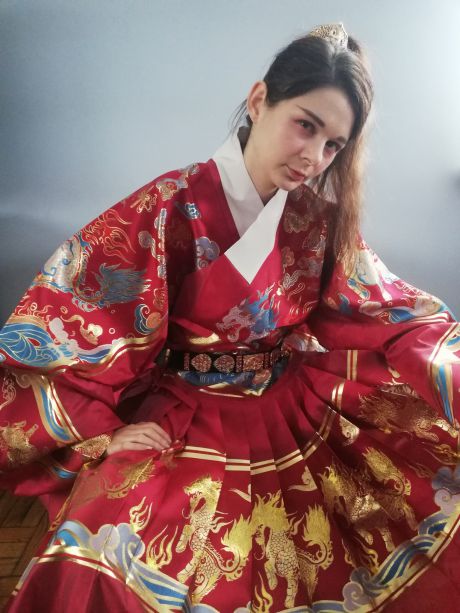 Dr Magdalena Grela-Chen z Instytutu Bliskiego i Dalekiego Wschodu UJ. Badaczka związków pomiędzy strojem a polityką w Azji, autorka publikacji dotyczących hanfui mody chińskiej. Prywatnie właścicielka kolekcji hanfuoraz innych strojów azjatyckich.