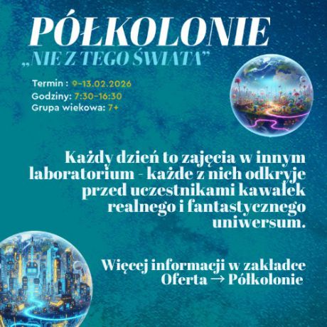 Małoplskie Centrum Nauki Cogiteon zaprasza na zimowe półkolonie "Nie z tego świata" w terminie 9-13 lutego 2026 roku.