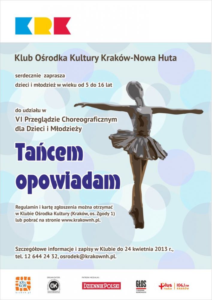 Od kilku lat, triumfy w mediach odnoszš programy, których celem jest odkrywanie uzdolnionych, w tym także tanecznie, młodych mieszkańców Polski. Również jeden z naszych klubów, na terenie dzielnic nowohuckich, poszukuje wród dzieci i młodzieży tanecznych talentów. W drugiej połowie kwietnia odbędzie się szósta już edycja Przeglšdu Choreograficznego dla Dzieci i Młodzieży Tańcem opowiadam.