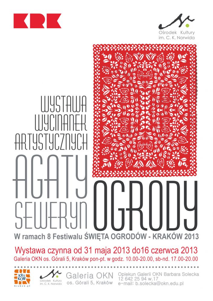 Zapraszamy na wystawę prac Agaty Seweryn zrealizowanš w ramach 8 Festiwalu Œwięta Ogródków w Krakowie.