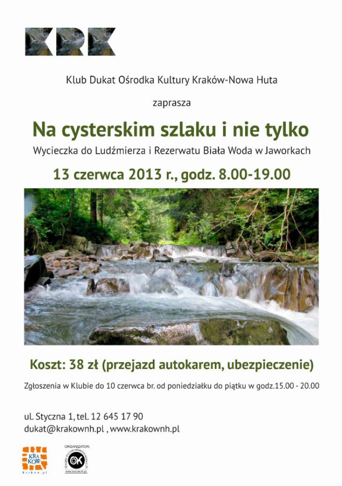 Klub Dukat Orodka Kultury Kraków-Nowa Huta (ul. Styczna 1) zaprasza na kolejnš wycieczkę dla seniorów. Tym razem zawitamy do Ludmierza i Rezerwatu Biała Woda w Jaworkach (w gminie Szczawnica). Ludmierz to dawna osada Gryfitów i miejsce pobytu cystersów od 1238 r. Zwiedzimy tu Sanktuarium Wniebowzięcia Najwiętszej Marii Panny oraz Ogród Różańcowy. Następnie udamy się do Szczawnicy, gdzie w rezerwacie przyrody Biała Woda poznamy budowę geologicznš i florę Małych Pienin, a także historię wsi łemkowskiej.