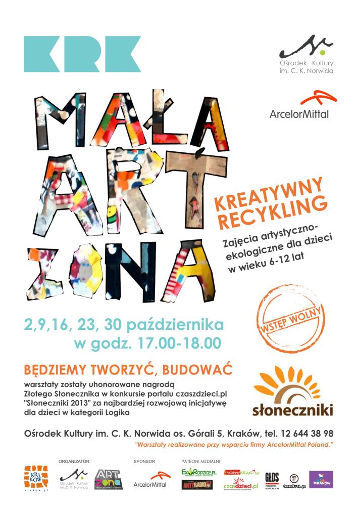 Mała ARTzona to warsztaty dla dzieci, wykorzystujšce kreatywne zabawy, upcykling, czyli wykorzystanie zużytych materiałów. Będziemy tworzyć zabawki, biżuterię i inne przedmioty. Pokażemy dzieciom jak przy odrobinie chęci można połšczyć oszczędnoć, pożytecznoć i wietnš zabawę!