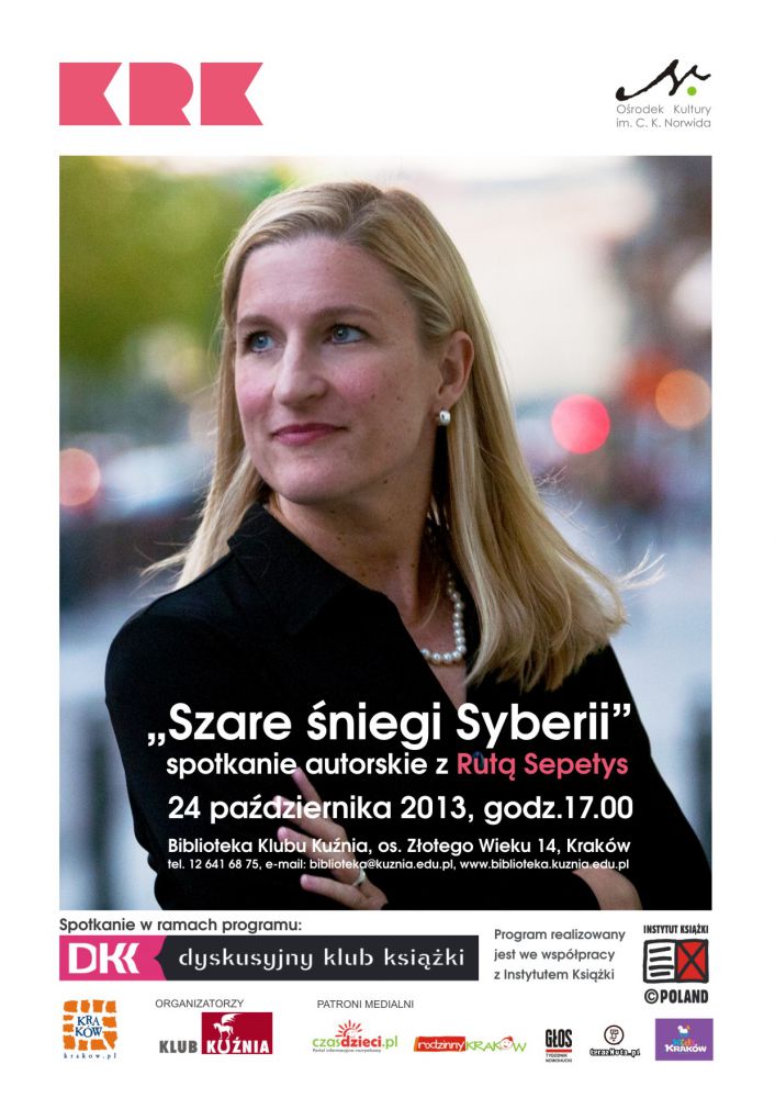 Serdecznie zapraszamy do Biblioteki Klubu Kunia Orodka Kultury im. C. K. Norwida na spotkanie z Rutš Sepetys, autorkš ksišżki pt. Szare niegi Syberii.