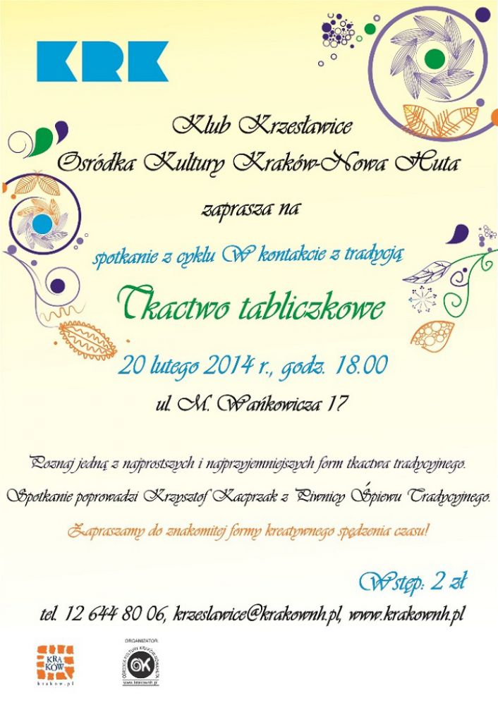Kolejne wydarzenie z cyklu W kontakcie z tradycjš, organizowanego przez Klub Krzesławice Orodka Kultury Kraków-Nowa Huta (ul. M. Wańkowicza 17).