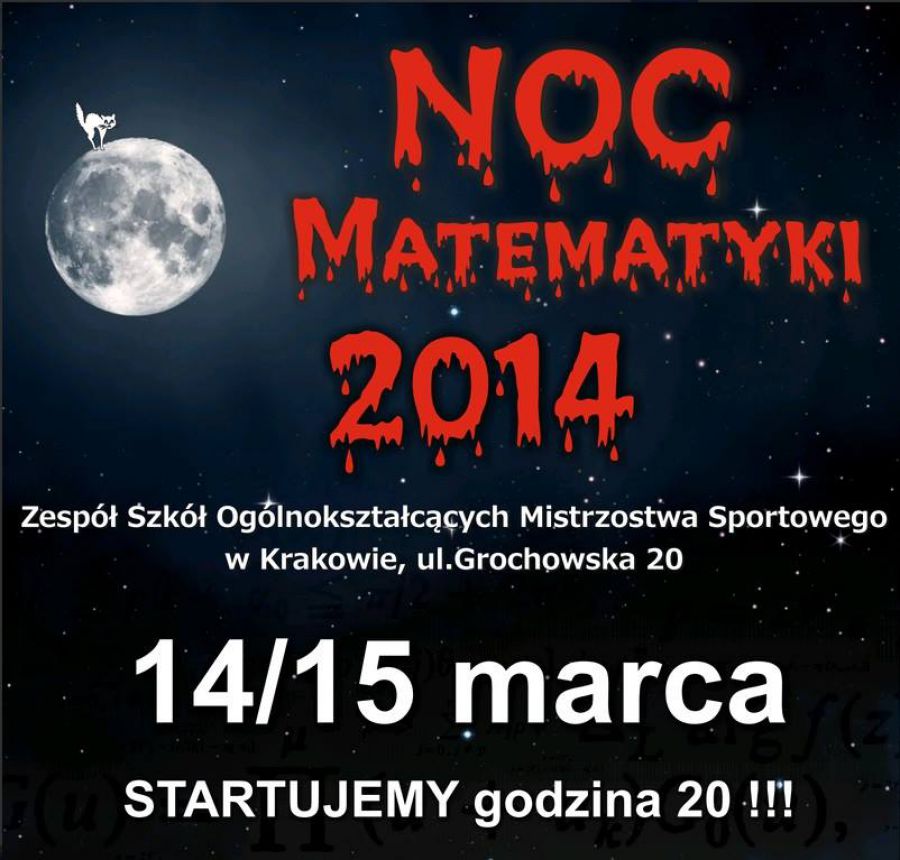 Zapraszamy Państwa na organizowany w nocy 14/15 marca w Zespole Szkół Ogólnokształcšcych Mistrzostwa Sportowego w Krakowie (ul. Grochowska 20) projekt międzyszkolny, oparty na grach logicznych i strategicznych pod nazwš Noc Matematyki.