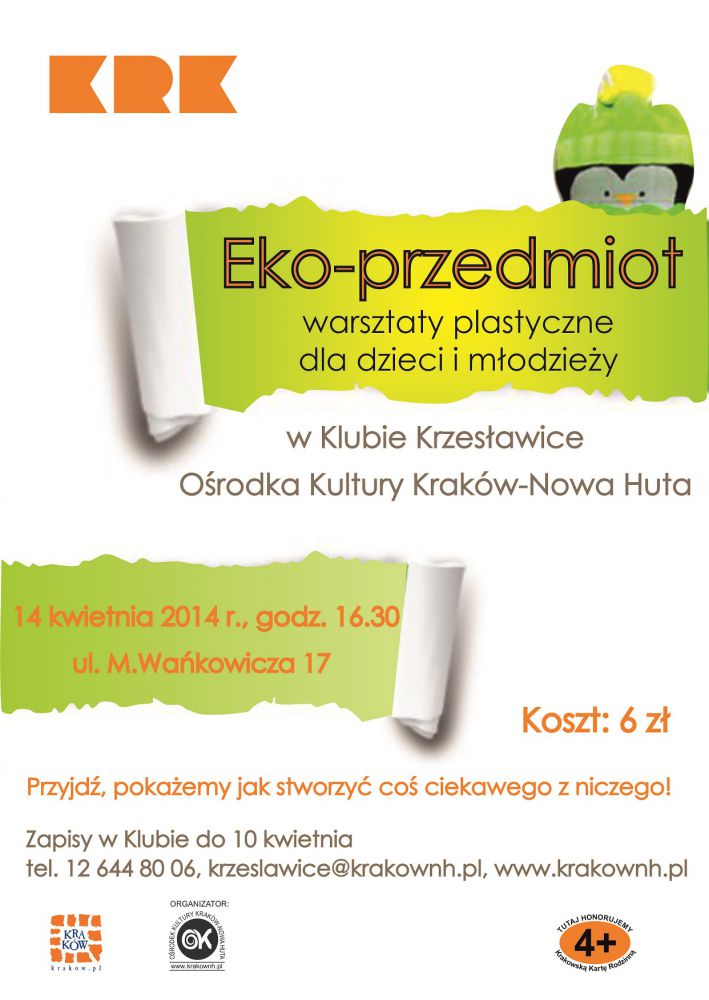 Jak stworzyć co z niczego? Czy mieci nadajš się tylko do kosza? Odpowiedzi na te i inne pytania otrzymajš uczestnicy warsztatów w Klubie Krzesławice Orodka Kultury Kraków-Nowa Huta (ul. M. Wańkowicza 17), podczas których będš tworzyć najróżniejsze przedmioty z materiałów recyklingowych. Tematyka kwietniowego spotkania dla dzieci i młodzieży będzie cile zwišzana z obchodami Międzynarodowego Dnia Ziemi.