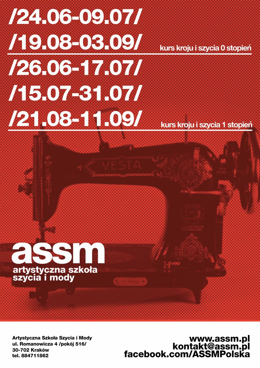 Artystyczna Szkoła Szycia i Mody ASSM zaprasza na wakacyjne kursy krawieckie. Jeżeli chcesz poznać tajniki dobrego wykroju? Oswoić maszynę do szycia? Po-dotykać materiałów i profesjonalnie ocenić ich jakoć? Stworzyć własnego manekina? Wyjć z własnoręcznie uszytymi ubraniami lub przerobić to co już masz w szafie? Przyjd do nas, mamy dla Ciebie propozycję! ASSM otwiera letniš edycję szkoły szycia. Oferujemy kursy dla dorosłych na dwóch stopniach trudnoci: zerowym i pierwszym.