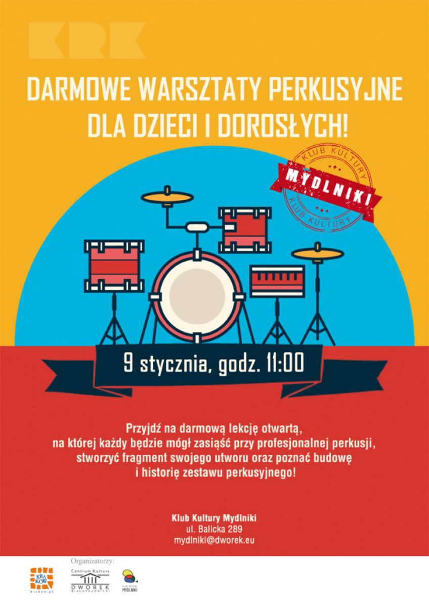 Przyjdcie na darmowš lekcję otwartš, na której każdy będzie mógł zasišć przy profesjonalnej perkusji i stworzyć fragment swojego utworu! Na warsztatach dowiecie się o: