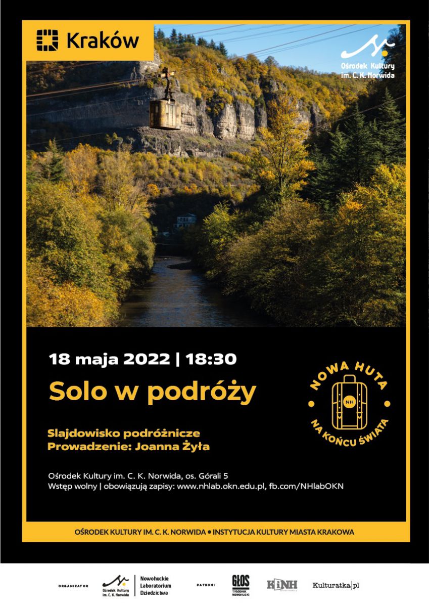Majowe slajdowisko z cyklu Nowa Huta na końcu wiata skupi się na podróżowaniu w ujęciu jak a nie gdzie. Prowadzšca podróżuje sama od ponad 20 lat ostatnie wyprawy to Meksyk i Kaukaz. Między innymi na ich przykładzie będzie oparta opowieć o samodzielnym, kobiecym podróżowaniu. Co daje podróż w pojedynkę czy płeć ma tutaj znaczenie? Jakie sš zalety i wady takiego podróżowania? Trudniej czy łatwiej zaplanować wyjazd solo cała logistyka spoczywa na jednej osobie, ale z drugiej strony nie trzeba wszystkich decyzji konsultować z towarzyszami/kami. Czy samotnoć w podróży przeraża czy daje wolnoć i sposobnoć przyjrzenia się sobie?