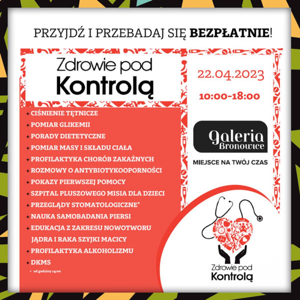 Celem akcji jest ułatwienie lokalnej społeczności dostępu do podstawowej diagnostyki medycznej i edukacji prozdrowotnej. „Zdrowie pod kontrolą” odbędzie się 22 kwietnia w godz. 10.00-18.00. Wstęp jest bezpłatny.