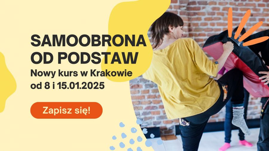 "KURS SAMOOBRONY oczywiście poleciłabym innym! Atmosfera super. Prowadzący cierpliwi, kompetentni i pomocni. Po pierwszych zajęciach już poczułam większą pewność w ciele i w głowie! Najbardziej podobała mi się mnogość różnych technik (w tak krótkim czasie trwania kursu!), indywidualne podejście do każdego, poprawa błędów, ćwiczenia tłumaczone w bardzo klarowny sposób." - to opinia Joanny, naszej uczestniczki. Dołącz i Ty!