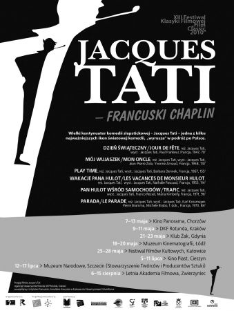Wizyta filmów Jacquesa Tati w Polsce, dzięki pomocy Instytutu Francuskiego i Konsulatu Francuskiego w Krakowie (z pomocš Stowarzyszenia Cultures France w Paryżu) jest nie lada wiosenno-letnim filmowym wydarzeniem. Filmy, prócz Dyskusyjnego Klubu Filmowego Rotunda w Krakowie, zaprezentowane będš również w Chorzowie, Gdyni, Łodzi, Katowicach, Cieszynie i Zwierzyńcu.