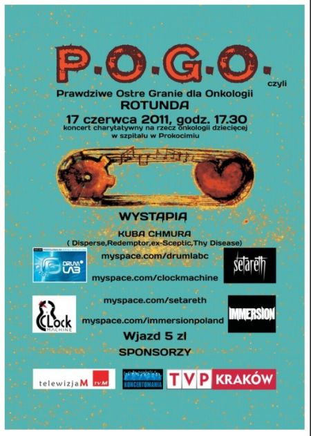 Tegoroczna, druga edycja P.O.G.O. będzie miała miejsce 17 czerwca w krakowskiej Rotundzie. Zagrajš zwišzani z Krakowem artyci: Clock Machine (energy rock), Setareth (gothic/rock), zespół Immersion (death/trash metal), bioršcy udział w akcji drugi raz oraz Kuba Chmura (Redemptor), który wystšpi z pokazem perkusyjnym.