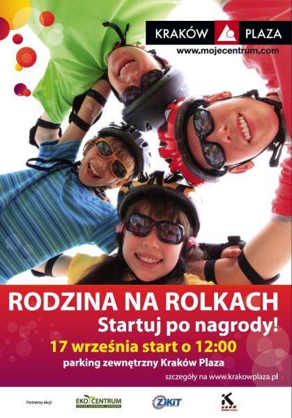 Osoby cenišce sobie rodzinne spędzanie czasu i ekologiczny styl życia zapraszamy na niezwykły rodzinny wycig rolkarzy w Kraków Plaza w dniu 17 wrzenia. Startujemy o godzinie 12:00 na parkingu Galerii Kraków Plaza. Dystans do pokonania dla dzieci to w przybliżeniu 4km a dla dorosłych 8km. Dla uczestników przewidziane zostały liczne atrakcje a na najlepszych czekajš wspaniałe nagrody w postaci bonów na zakupy, sprzętu sportowego i ekologicznych upominków.