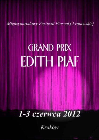 Zapraszamy miłoników piosenki francuskiej oraz wszystkich wokalistów do udziału w konkursie o Grand Prix Edith Piaf w dniach 1-3 czerwca 2012. Zgłoszenia uczestników przyjmujemy do 30 kwietnia 2012. Eliminacje I stopnia od 12 maja, II stopnia 1 czerwca.