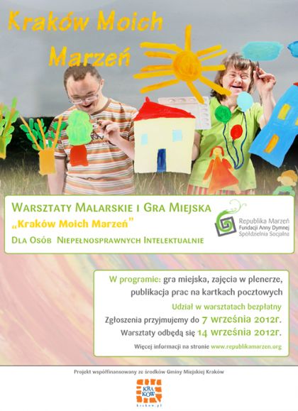 Spółdzielnia Socjalna Republika Marzeń Mimo Wszystko zaprasza osoby niepełnosprawne intelektualnie z Krakowa do udziału w warsztatach malarskich i grze miejskiej Kraków moich marzeń. Zgłoszenia należy przesyłać do 7 wrzenia.