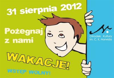 W ostatni dzień wakacji pištek 31 sierpnia zapraszamy dzieci i młodzież do spędzenia ostatnich wakacyjnych chwil na zajęciach w Norwidzie.