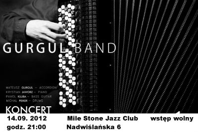 GURGUL BAND powstał w 2011 roku. W jego skład wchodzi czterech muzyków, absolwentów krakowskiej i katowickiej akademii muzycznej: Mateusz Gurgul – accordion, Krystian Jaworz – piano, Paweł Kluba – bass oraz Michał Peiker – drums. Mieszanka talentów, fascynacji oraz charakterów wpływa na oryginalnoœć muzyki GURGUL BANDU, oscylujšcej pomiędzy jazzem a muzykš filmowš. Obecnie zespół kończy nagrania do pierwszego albumu złożonego wyłšcznie z autorskich kompozycji.