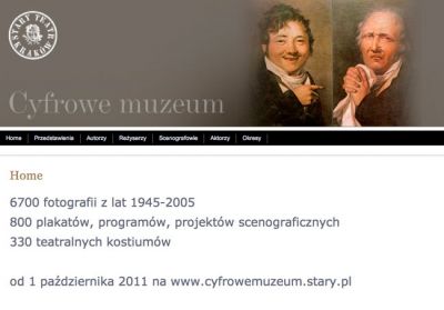 Cyfrowe Muzeum tworzy zdygitalizowany materiał związany z historią Starego Teatru w Krakowie z lat 1781 – 2005. Przedmiotem digitalizacji były zdjęcia z przedstawień i prób, projekty dekoracji i kostiumów, wkładki programowe, plakaty, afisze, kostiumy z lat 1945 – 2005; ryciny i zdjęcia dokumentujące historię Teatru Krakowskiego oraz budynku przy placu Szczepańskim w latach 1781 – 1906.